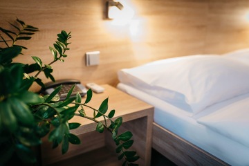 This is a spacious, modern room with a double bed or twin beds. It is equipped with a TV, telephone, safe, hairdryer and tea set. A bathrobe and slippers are provided in the closet for easy transfer to our wellness.