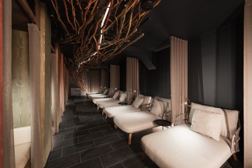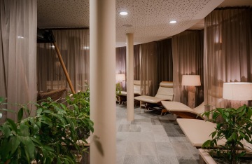 Tichá odpočívárna s vlastním vodním barem, knihovnou a hlavně oddělenou místností, kde na vás na jedné straně čekají pohodlná relaxační lůžka a na straně druhé oddělené boxy, které vám dopřejí ještě klidnější odpočinek.