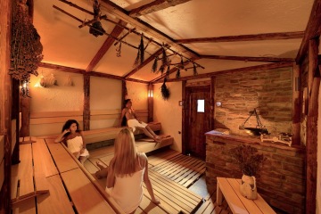 Nejprostornější venkovní sauna v Saunovém světě, která je jedinečná umístěním kamen uprostřed místnosti a celodenním programem ve formě saunových ceremoniálů. Vlhkost i teplota v místnosti se může měnit v závislosti na prováděných ceremoniálech.