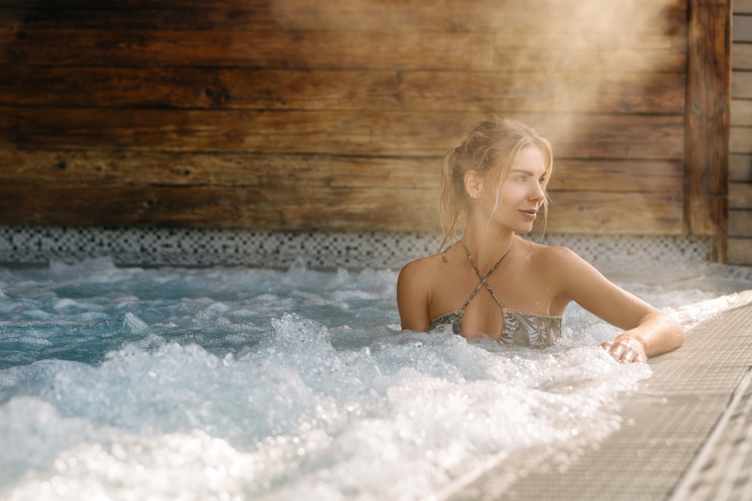 Ve vířivém whirlpoolu s hvězdnou oblohou můžete vyzkoušet různé druhy hydromasáží.