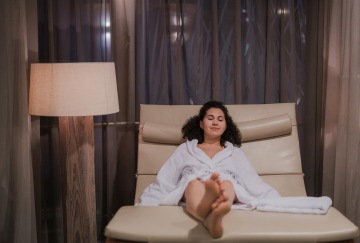 Vedle vnitřního bazénu se nachází prostorná odpočívárna s pohodlnými lehátky a houpačkami, ze kterých si můžete vychutnat výhled na bazén. Atmosféru doplňuje krb a příjemná vůně.